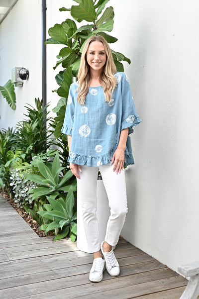 Regular price $89.99Cali & Co Circle print Linen Top CA2181a - Denim