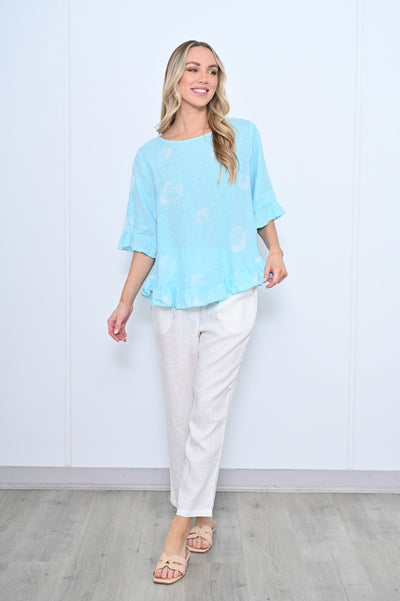 Regular price $89.99Cali & Co Circle print Linen Top CA2181a - Aqua