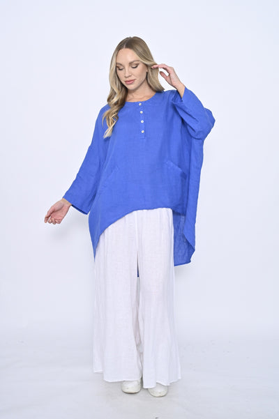 Regular price $109.99Cali & Co relaxed fit Linen top CA24108 - Cobalt Blue