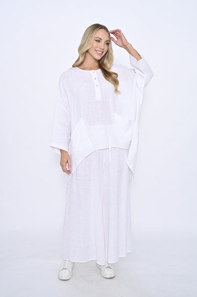 Regular price $89.99Cali & Co Front Button Linen Tunic CA24106 - White