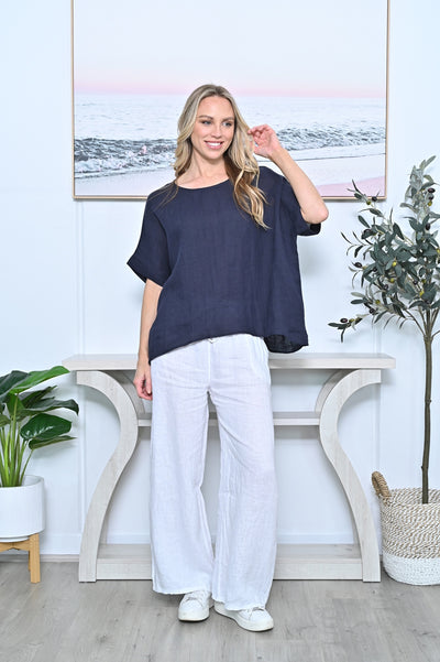Regular price $119.99Cali & Co relaxed fit Linen top CA24108 - Navy