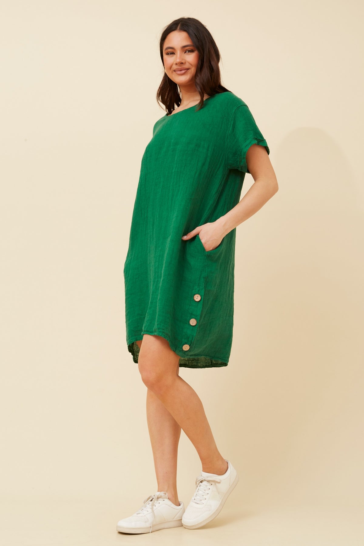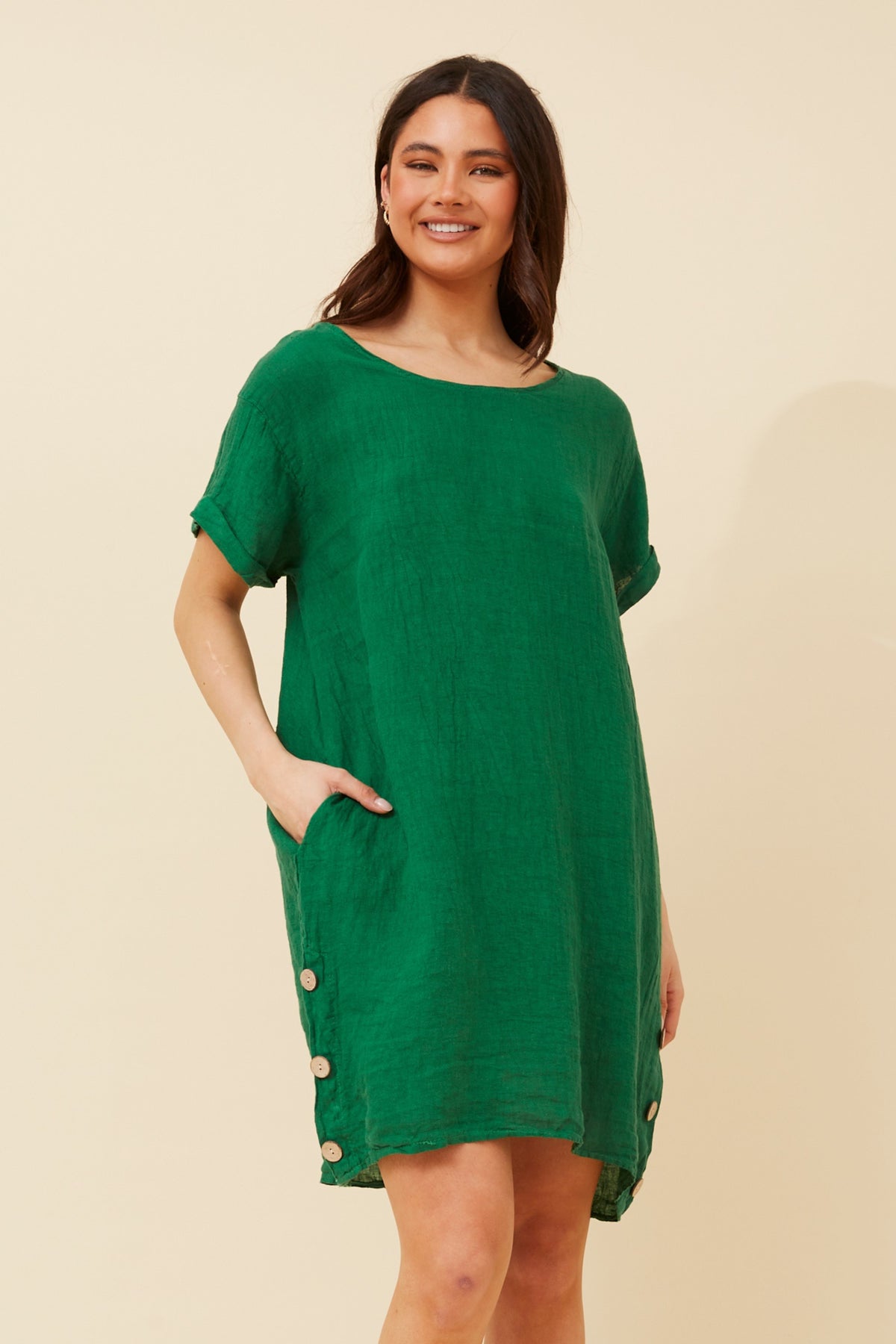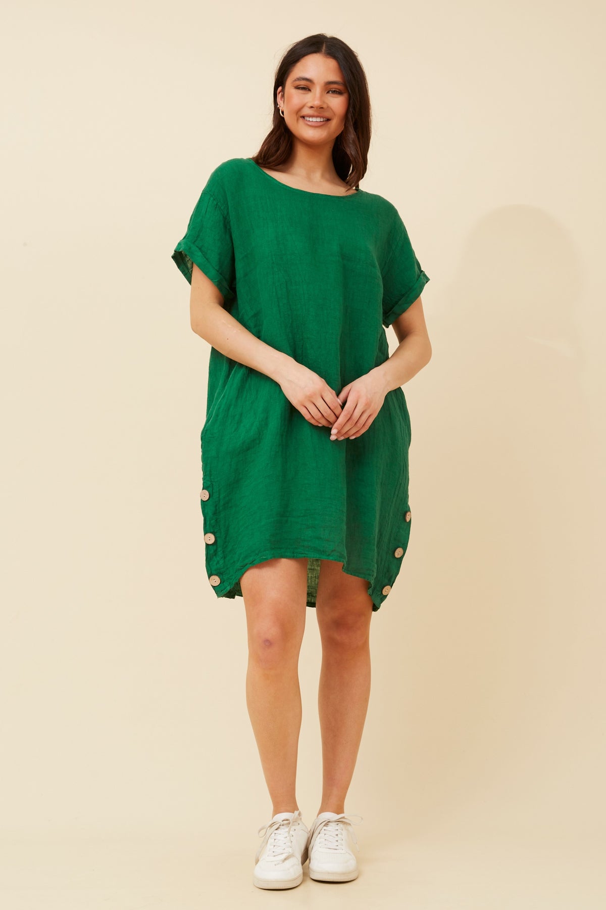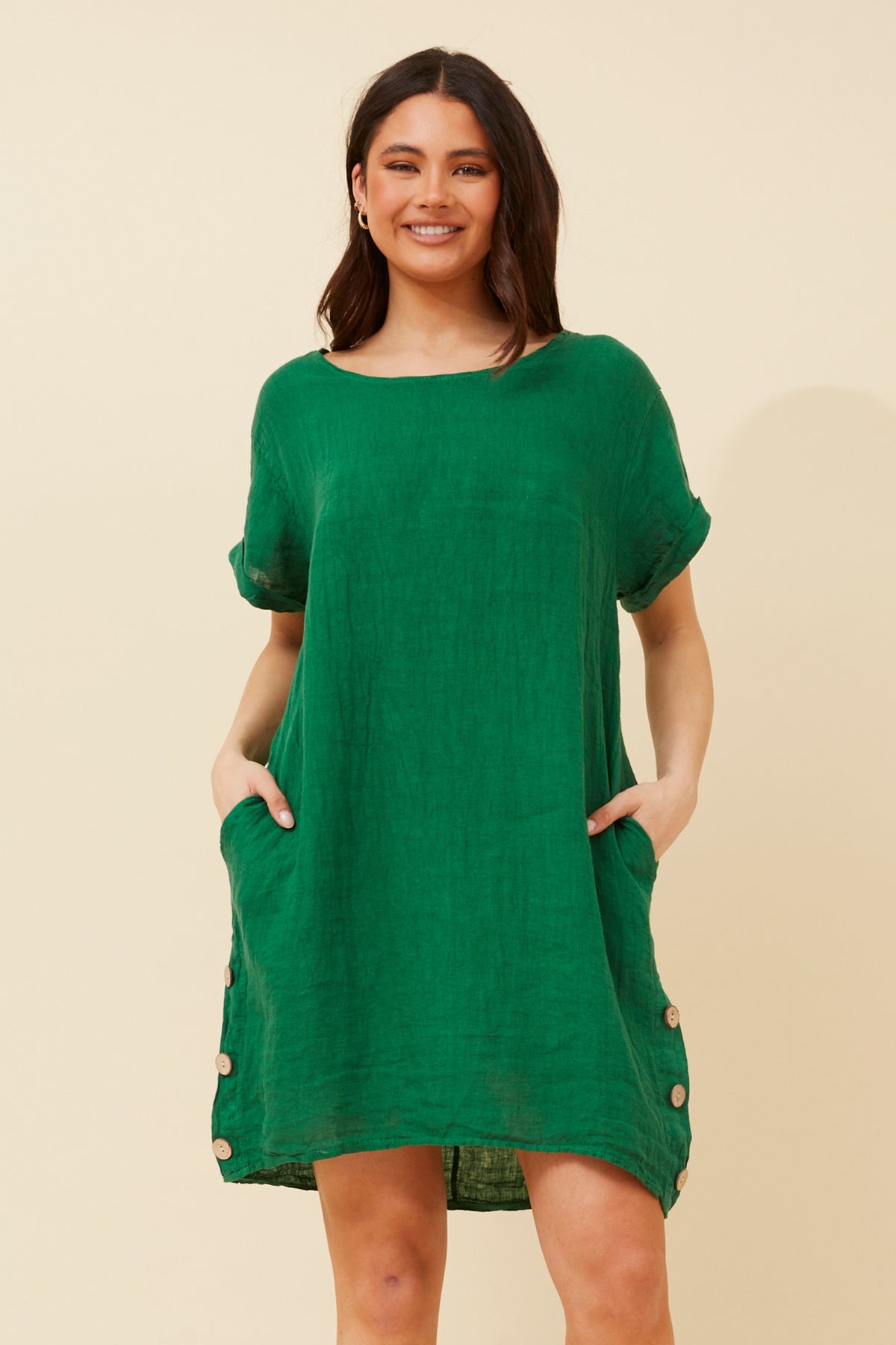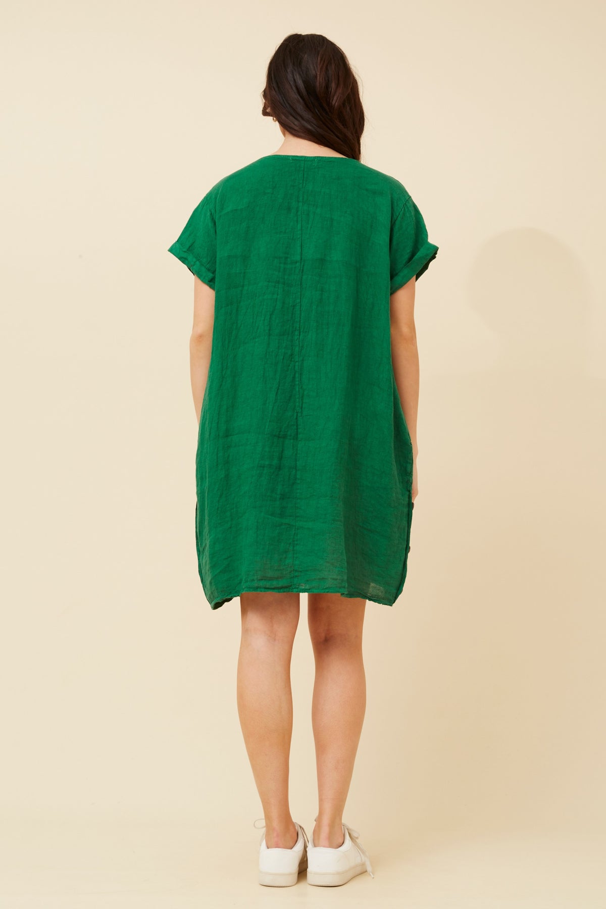 Bring effortless charm to your warm-weather wardrobe with the Leela V Neck Mini Dress. Crafted from lightweight, breathable 100% cotton, this mini dress features a playful, relaxed silhouette with a V-neckline and partial button placket for easy wear. The soft, short sleeves enhance the breezy feel, while the multi-tiered design creates volume and movement with every step. Whether you're heading to a brunch, beachside stroll, or a casual day out, this vibrant smock dress offers all-day comfort with a free-spirited, bohemian flair. Its vivid color palette and flowing shape make it the perfect throw-on-and-go piece for summer