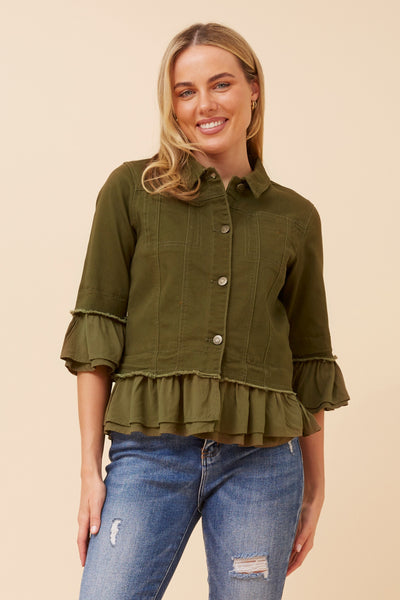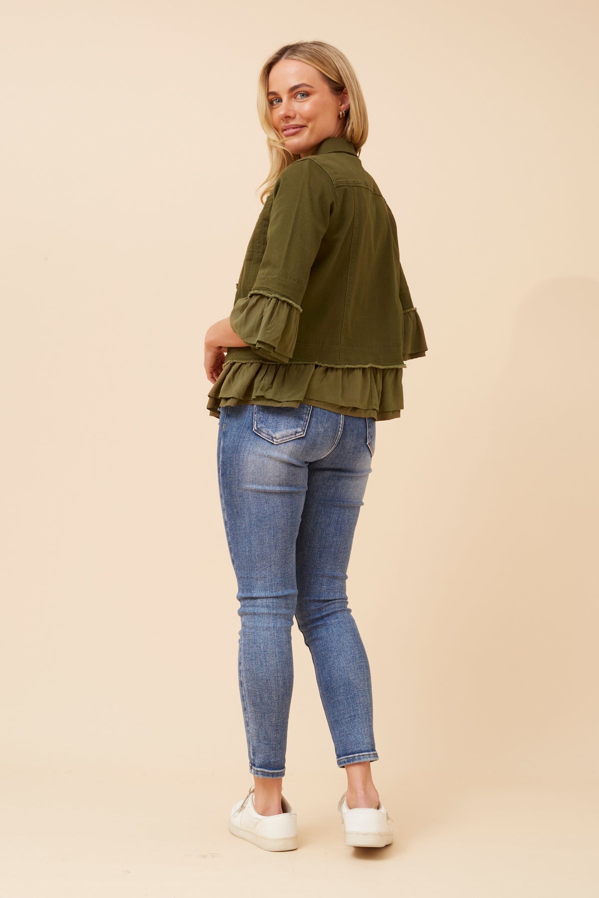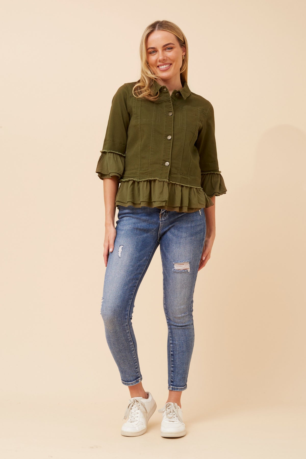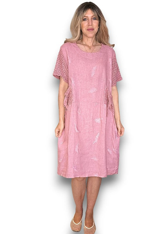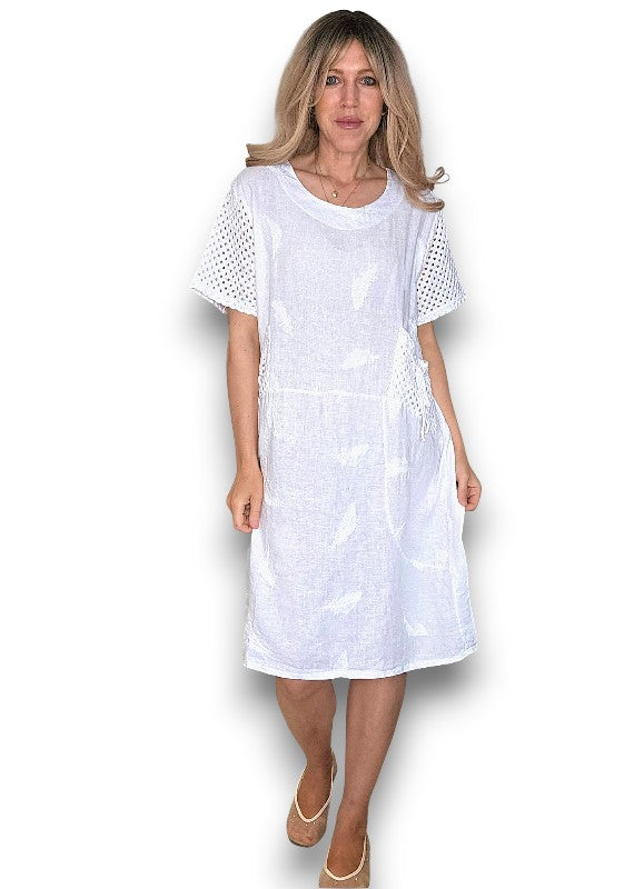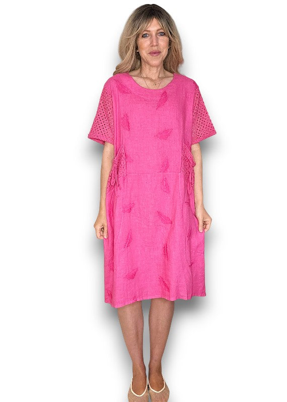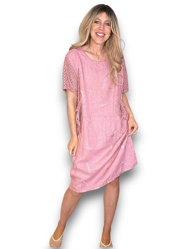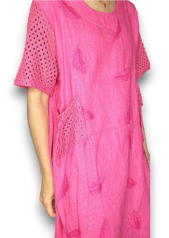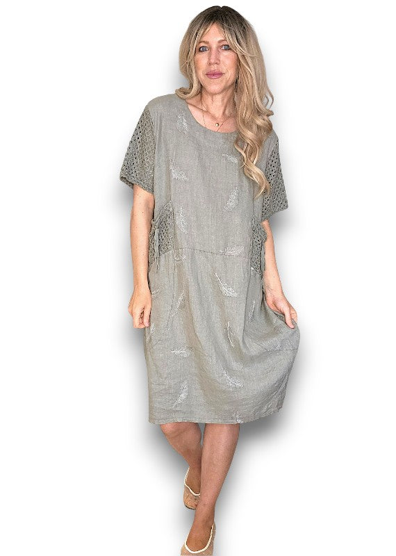 Comp:100% Linen on Main with elastic/cotton ribbing on bottom hem and sleeve ends