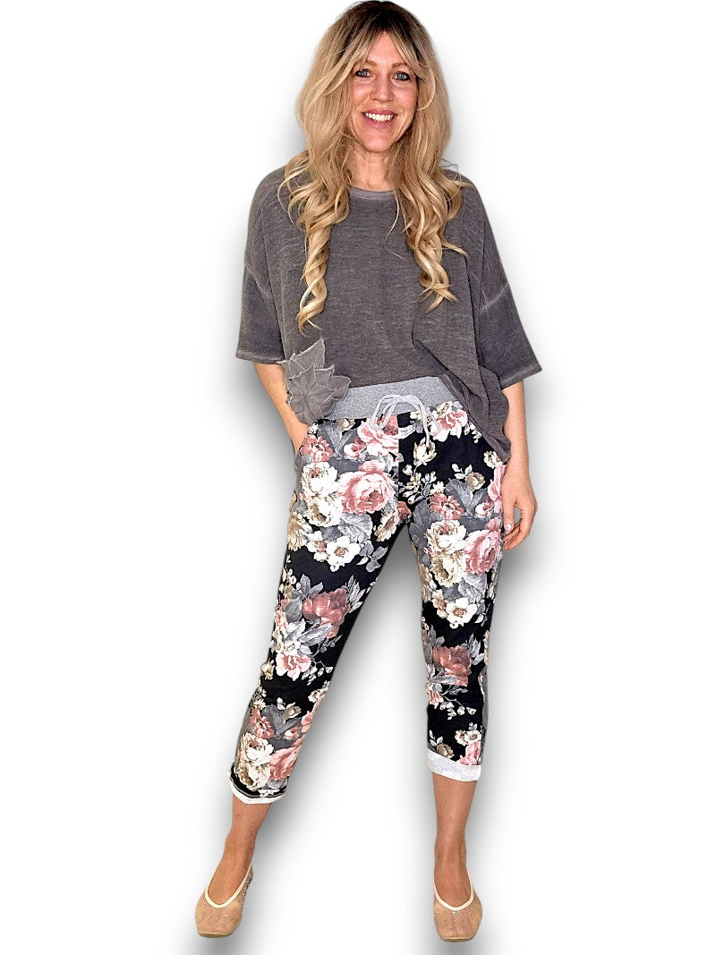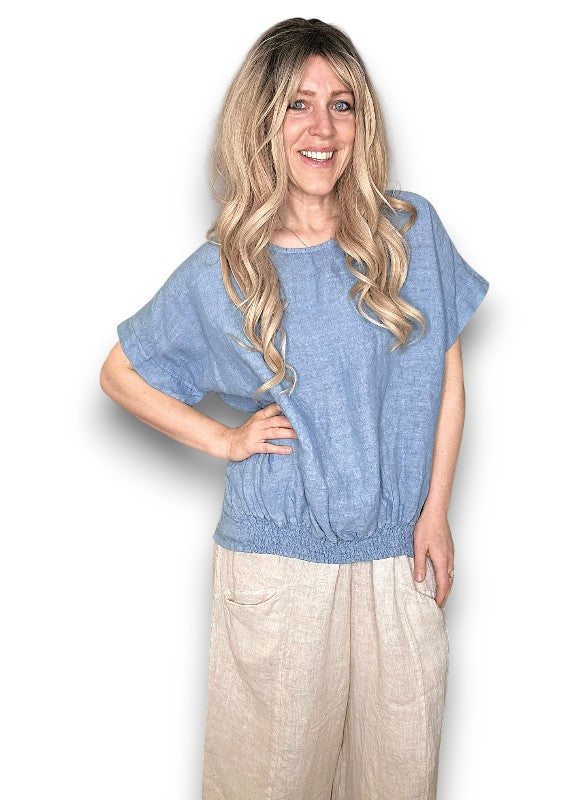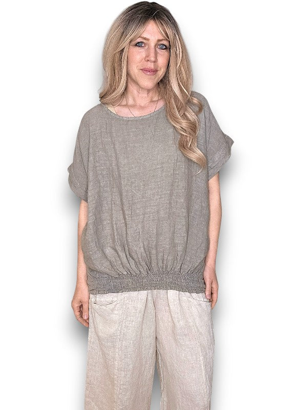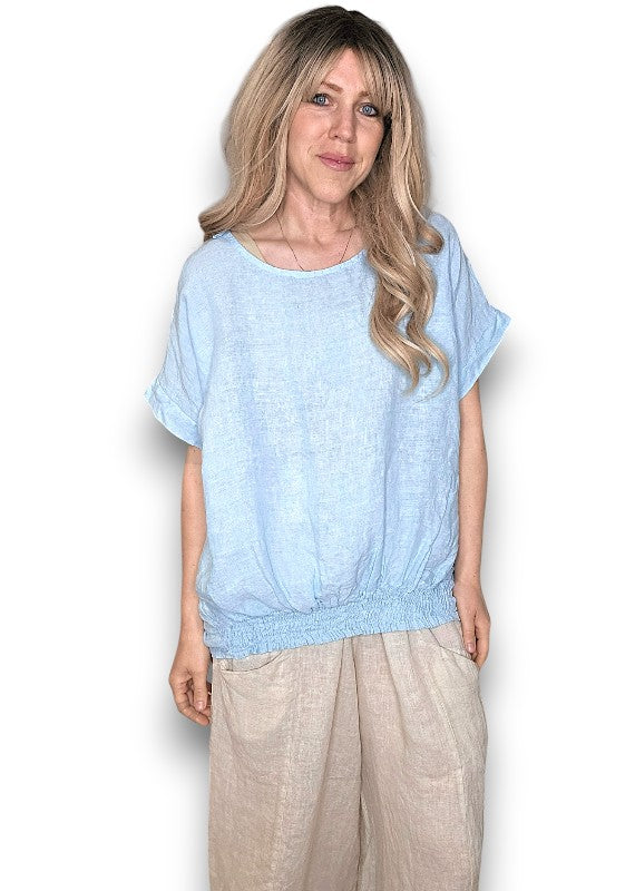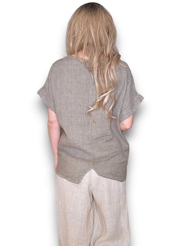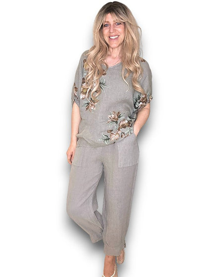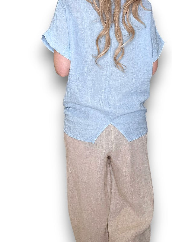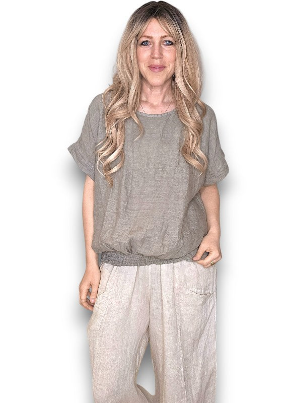 Wide and super comfortable Linen Pants with soft linen elastic waist featuring front outer pockets, Larger Free-Sizing.