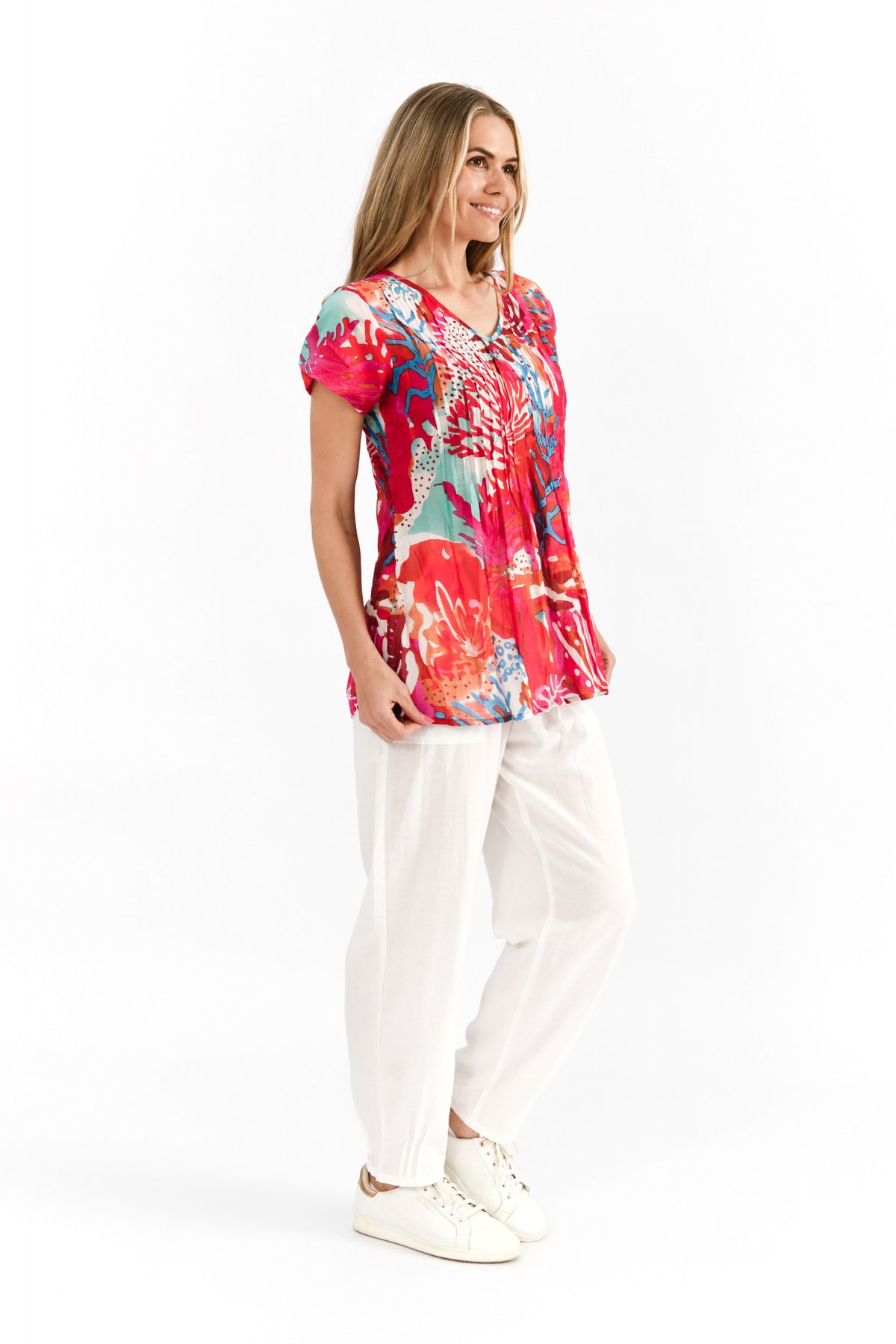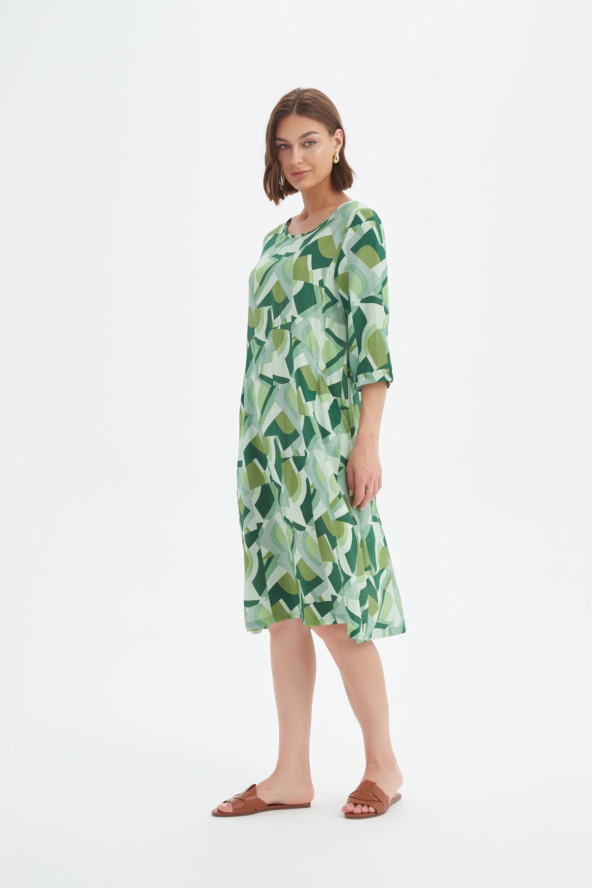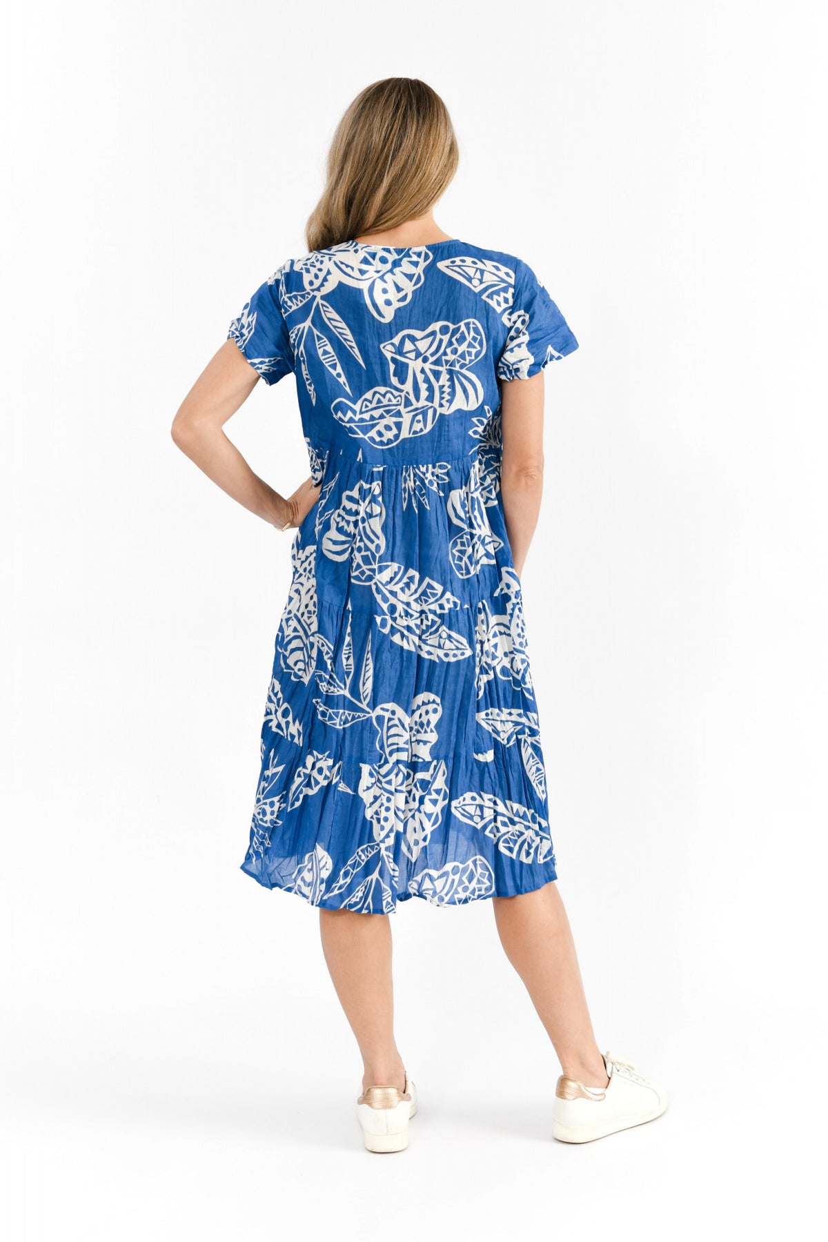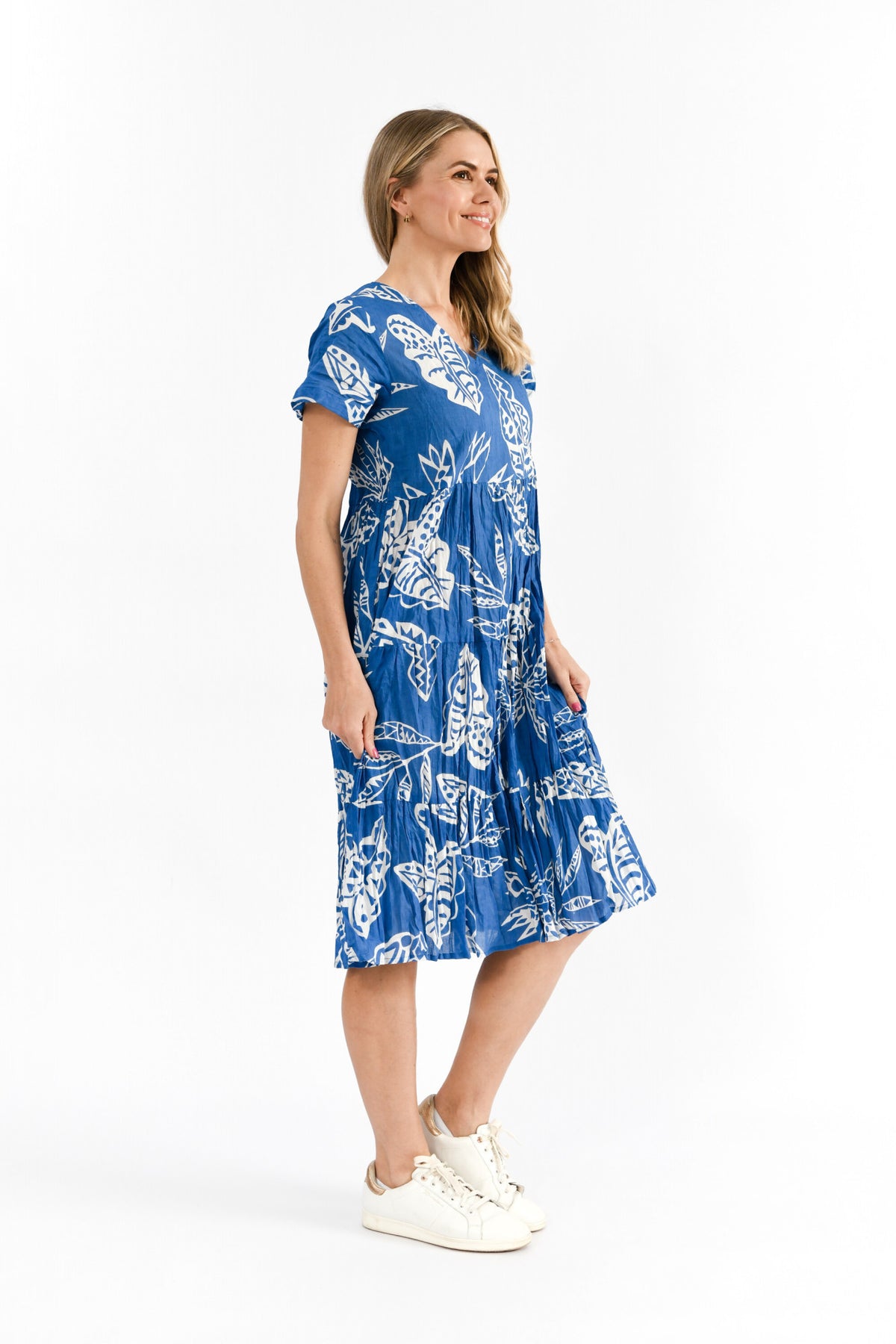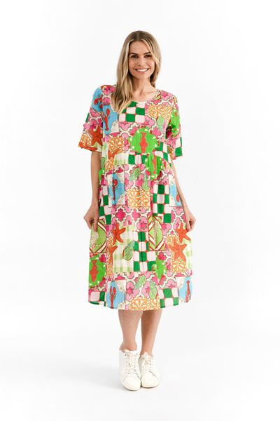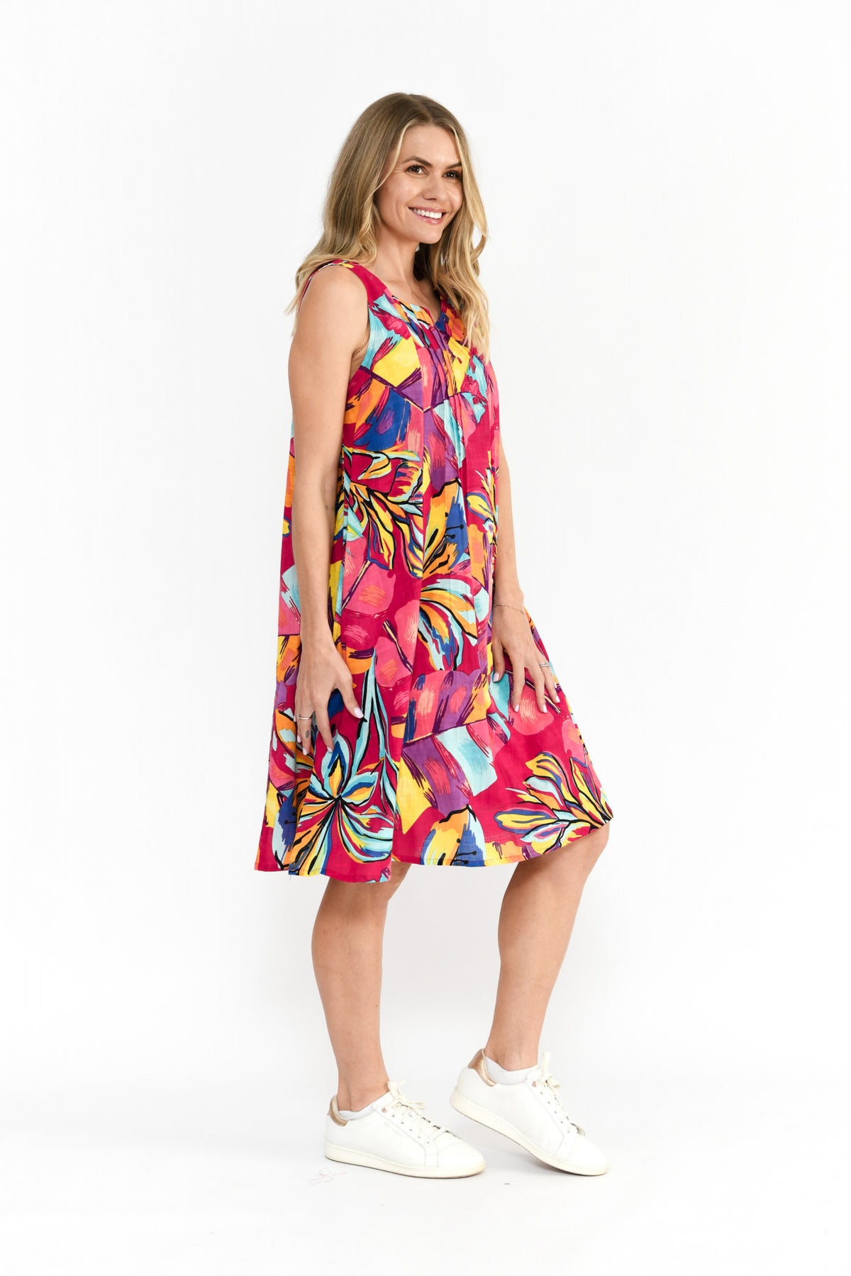Bring effortless charm to your warm-weather wardrobe with the Leela V Neck Mini Dress. Crafted from lightweight, breathable 100% cotton, this mini dress features a playful, relaxed silhouette with a V-neckline and partial button placket for easy wear. The soft, short sleeves enhance the breezy feel, while the multi-tiered design creates volume and movement with every step. Whether you're heading to a brunch, beachside stroll, or a casual day out, this vibrant smock dress offers all-day comfort with a free-spirited, bohemian flair. Its vivid color palette and flowing shape make it the perfect throw-on-and-go piece for summer