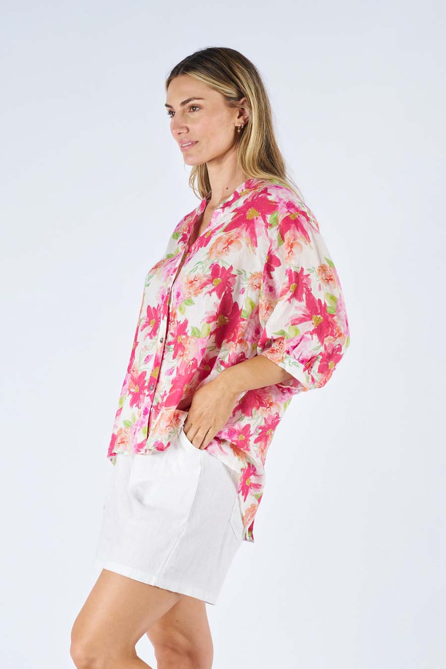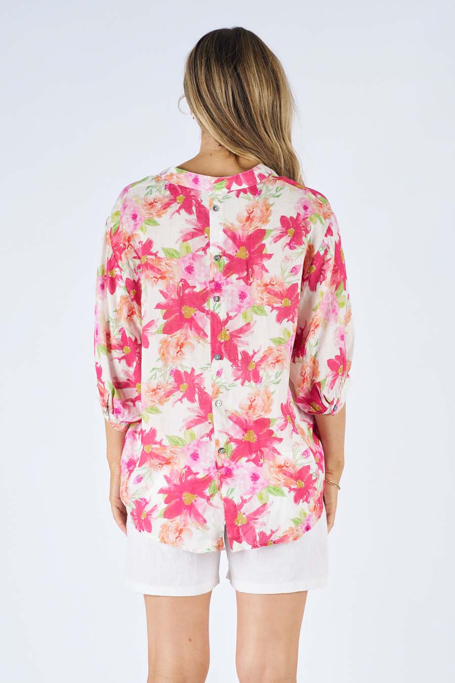 Worthier The Label Aurelia Printed Linen top WY29504 - Pink Flower