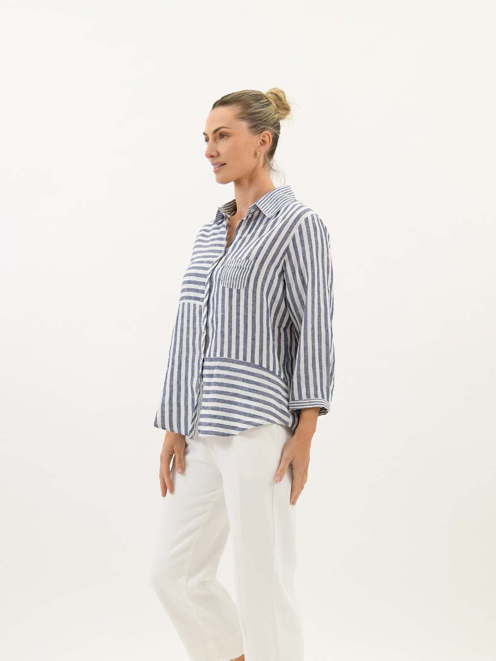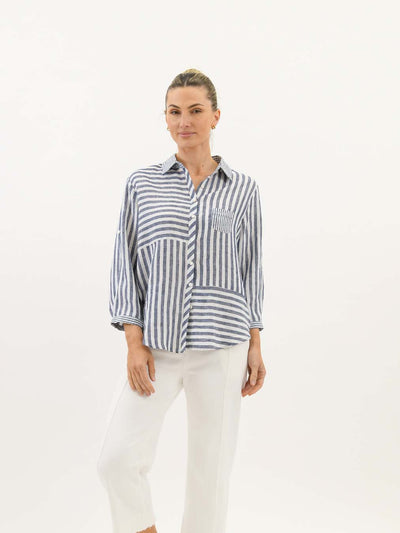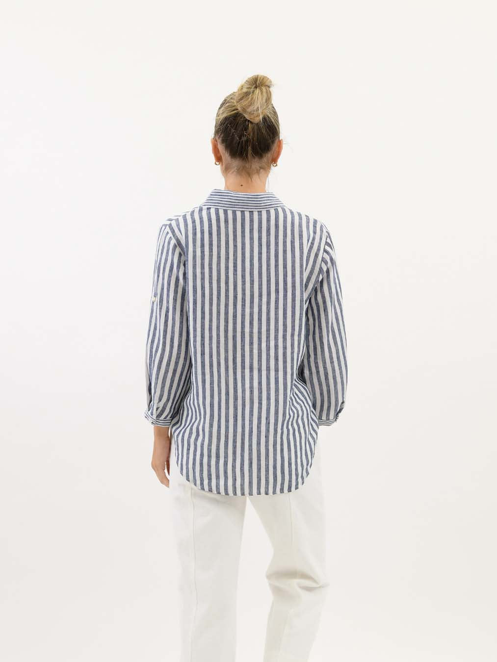 Worthier The Label Hyatt Button through Linen Shirt WY-2312A - Navy