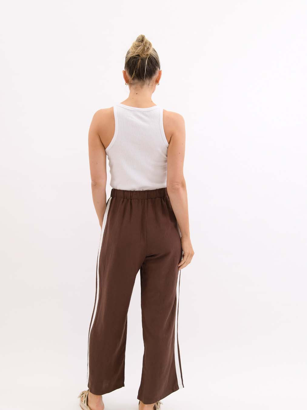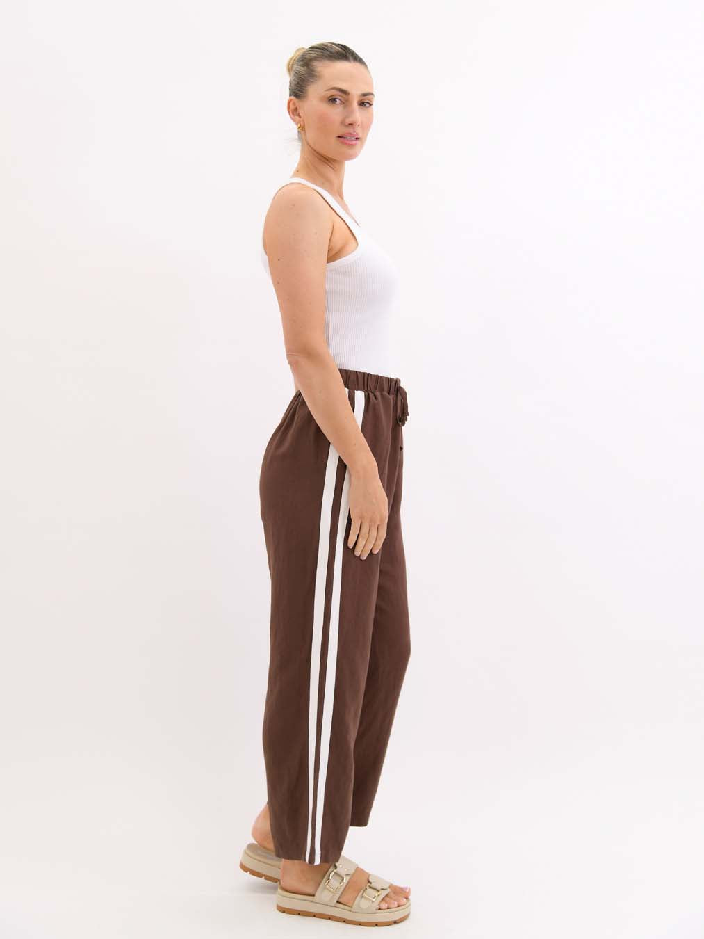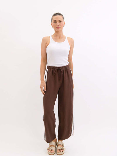 Worthier The Label Violet Linen Blend Pants WY-0659 - Choco/White